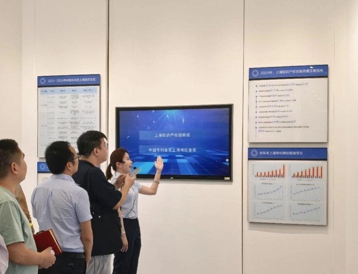講解員向來訪企業代表和市民介紹上海市知識產權工作情況。(圖片來源:新華社)